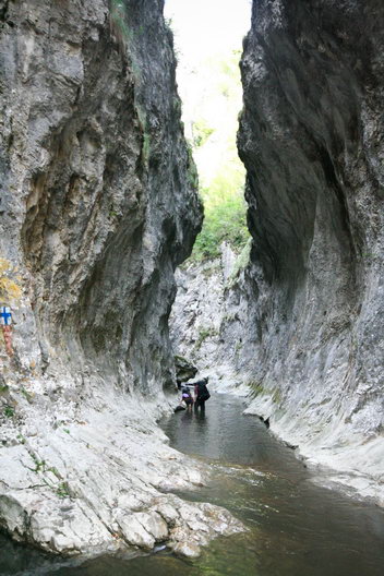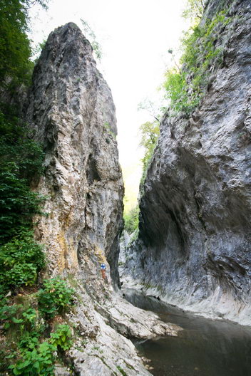 Ne-am bucurat sa facem iar traseul prin chei, cu sandalele direct prin apa, dar de data asta nu am mai strabatut cheile in intregime ci doar am trecut prin vestitul portal si ne-am oprit in zona de maxima frumuste, denumita “La Cuptor”, unde am stat sa ne prajim putin la soare si sa ne bucuram de racoarea apei. Ne-am intors tot pe firul apei, dar gandul ne zbura si la traseul de intoarcere de pe Brana Caprei, facut datile trecute, (vezi aici) si la superbele peisaje ce ti se deschid deasupra cheilor, de acolo de pe inaltimi.